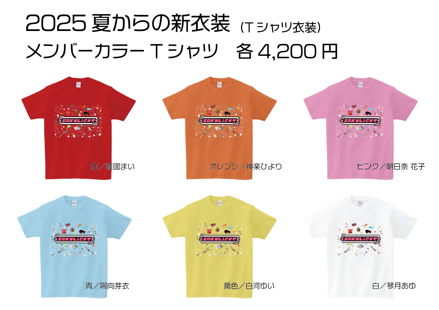 2025年夏から登場した新衣装で、メンバーが着用している衣装用Tシャツを全カラー+黒販売開始!!